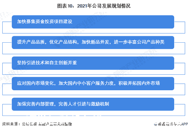 2021年公司計劃加快募集資金投資項目建設(shè);提升產(chǎn)品品質(zhì),優(yōu)化產(chǎn)品結(jié)構(gòu),加快新品開發(fā),進一步豐富公司產(chǎn)品種類;堅持引進技術(shù)和自主創(chuàng)新并重;應(yīng)對國內(nèi)市場變化,加大國內(nèi)中小客戶服務(wù)力度,積極開拓國內(nèi)外市場;加強完善內(nèi)部管理,完善人才引進與激勵機制。