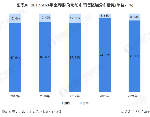 ——無紡布區(qū)域布局:無紡布以國內(nèi)銷售為主