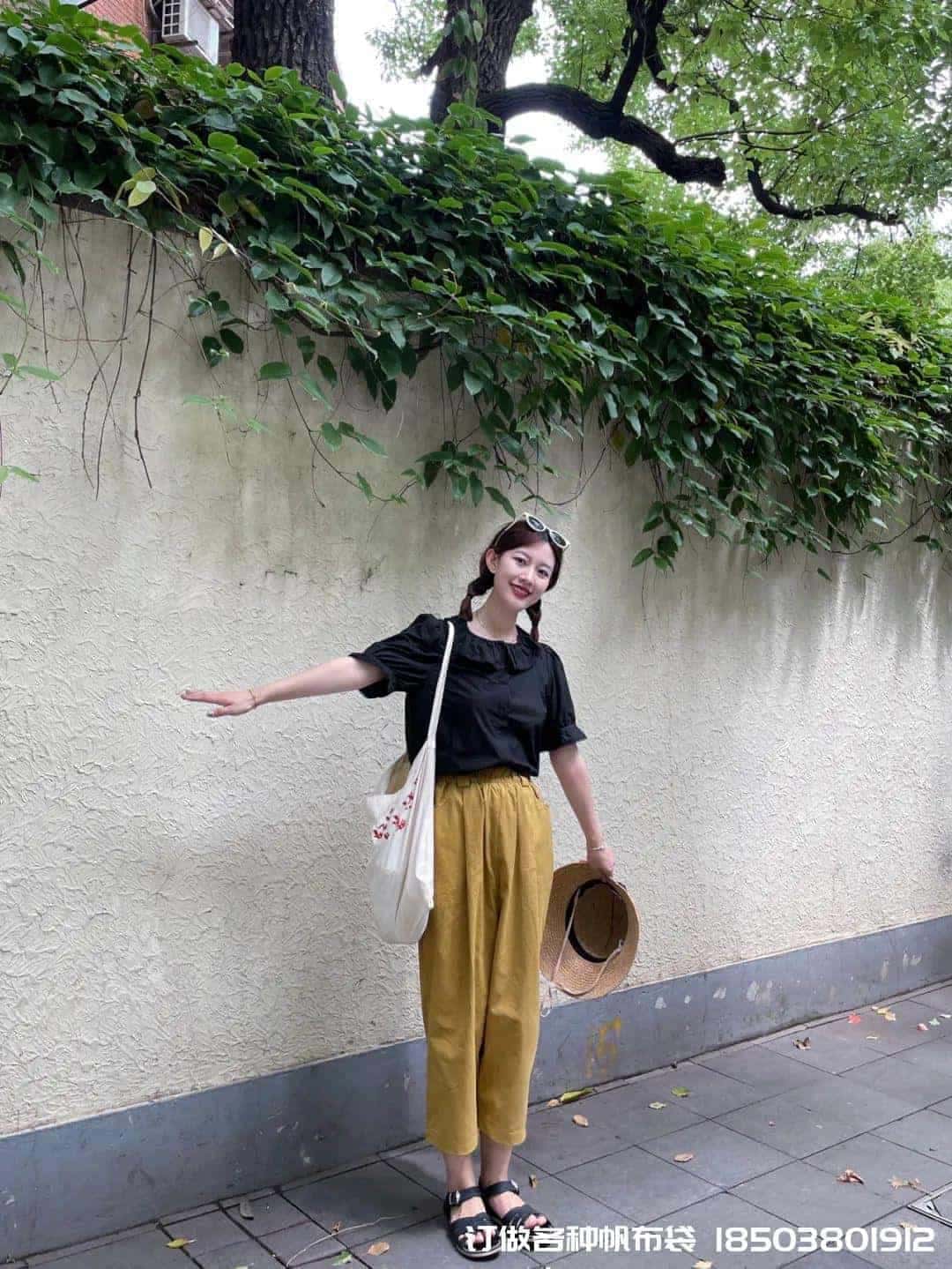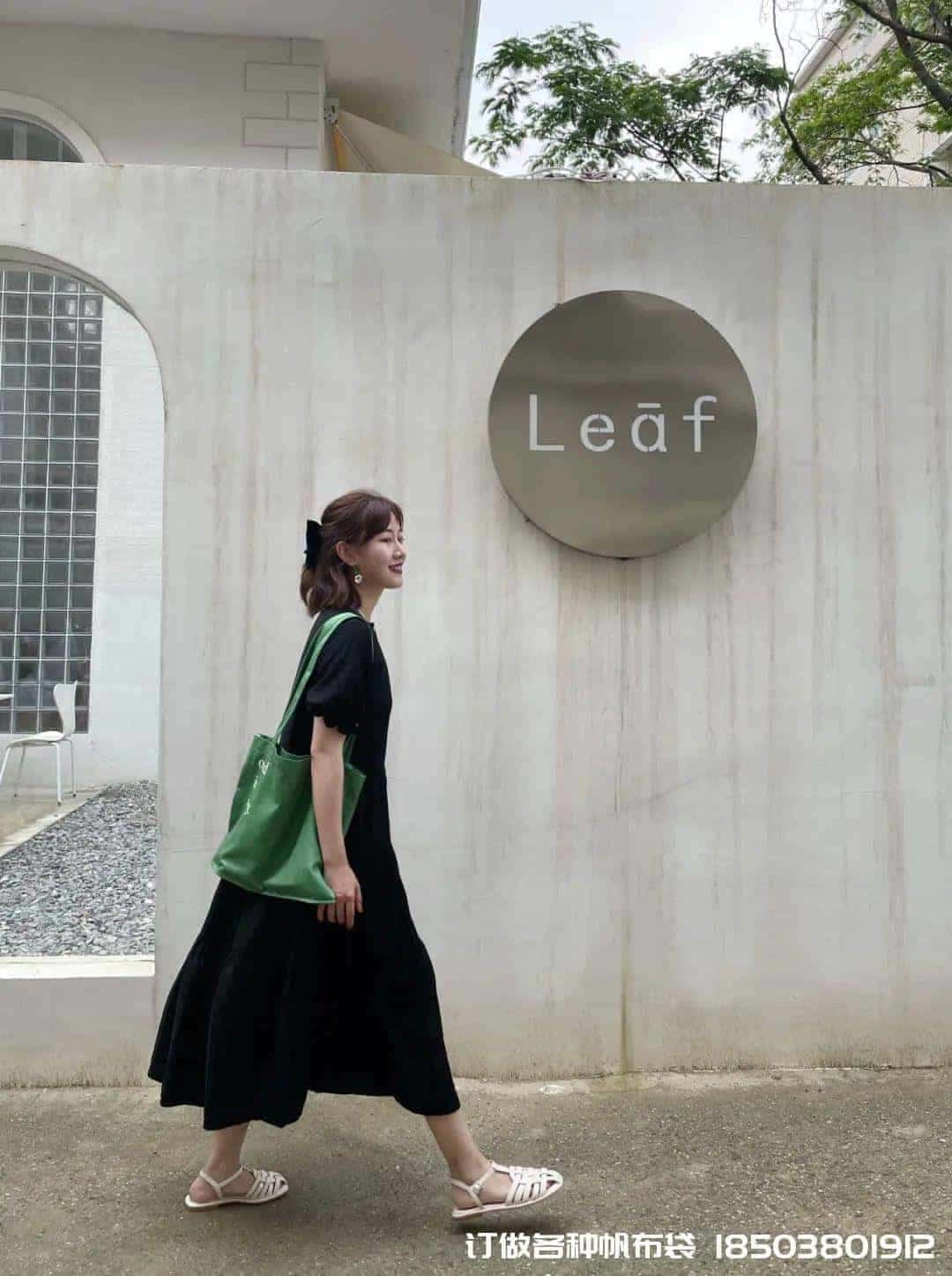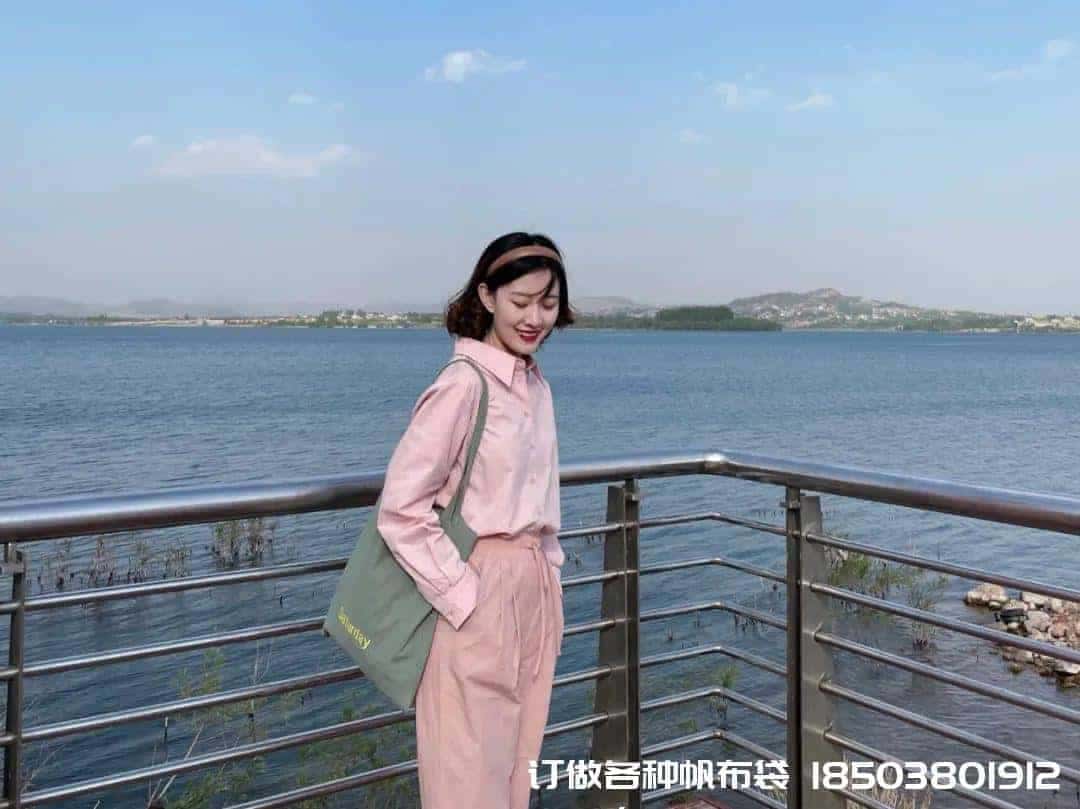 同樣是綠色,飽和度不同,適合帆布手提袋帆布袋制作電話/微信:15838231350搭配的衣服也完全不一樣,這只淺豆綠的顏色非常美,特別適合搭配白色、粉色、杏色的衣服。