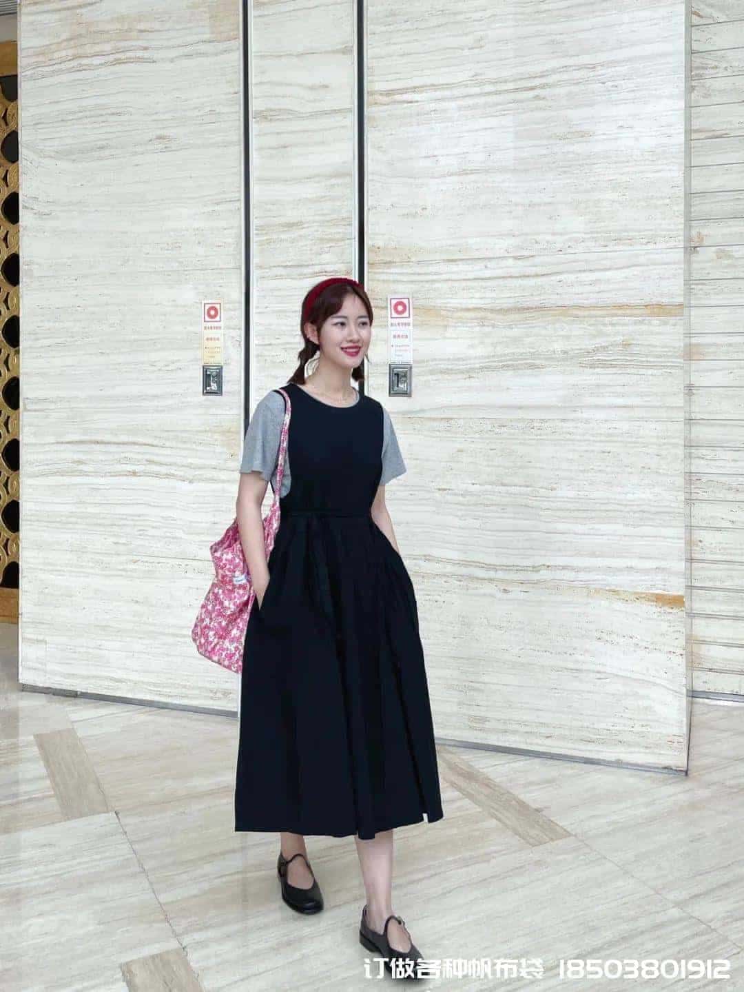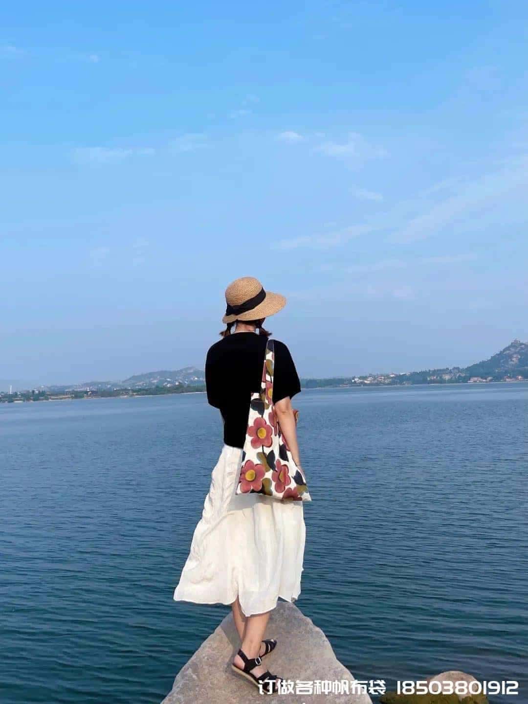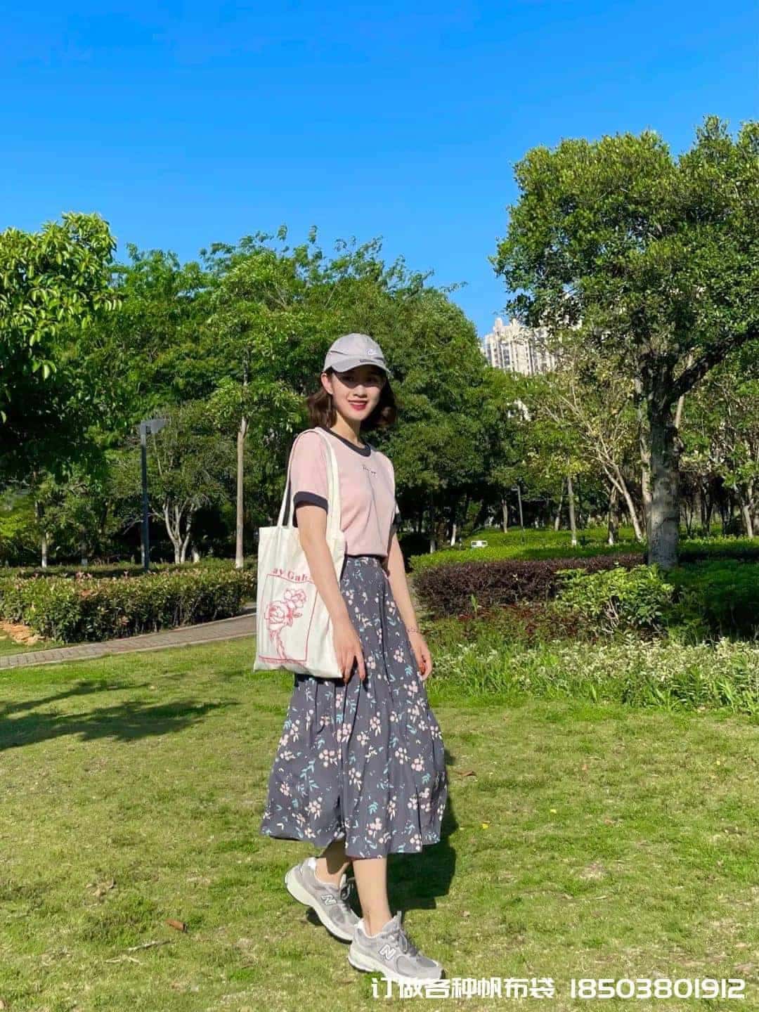 碎花包的搭配只需要碎花中的一種顏色跟衣服呼應(yīng)就好,比如這只包搭配粉色也很和諧,真是帆布手提袋帆布袋制作電話/微信:15838231350怎么搭配都好看。