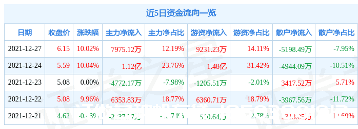 資金流向數據方面,當日主力資金凈流入7975.12萬元,游資資金凈流入9231.23萬元,散戶資金凈流出5198.49萬元。近5日資金流向一覽見下表: