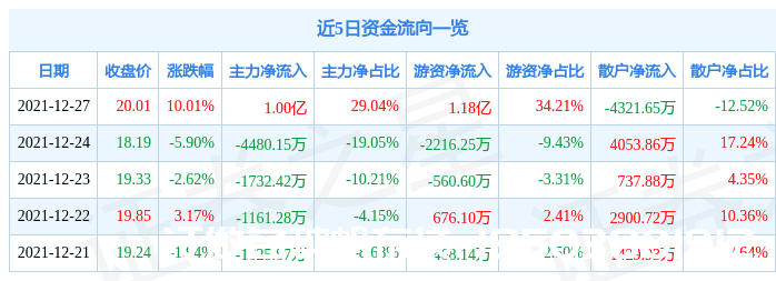 資金流向數(shù)據方面,當日主力資金凈流入1.0億元,游資資金凈流入1.18億元,散戶資金凈流出4321.65萬元。近5日資金流向一覽見下表: