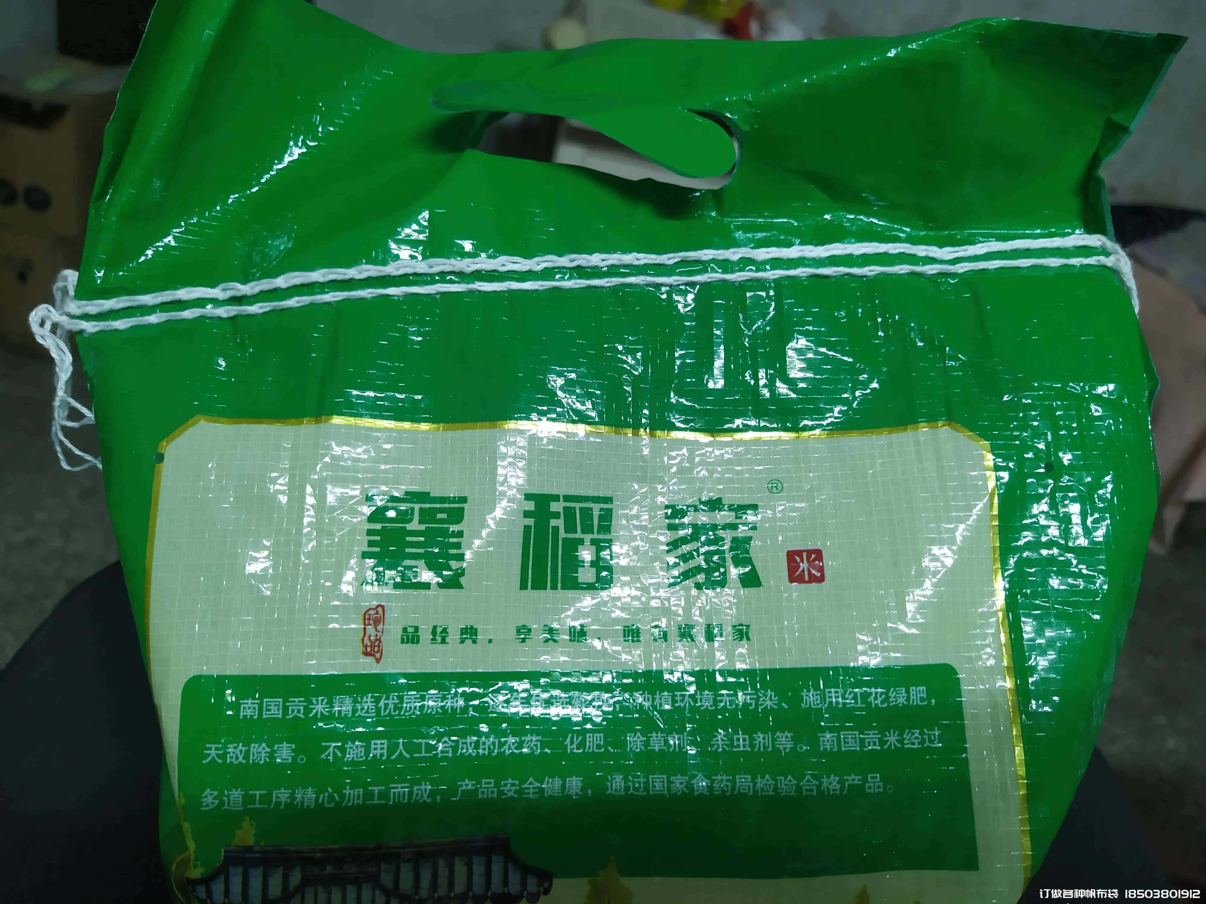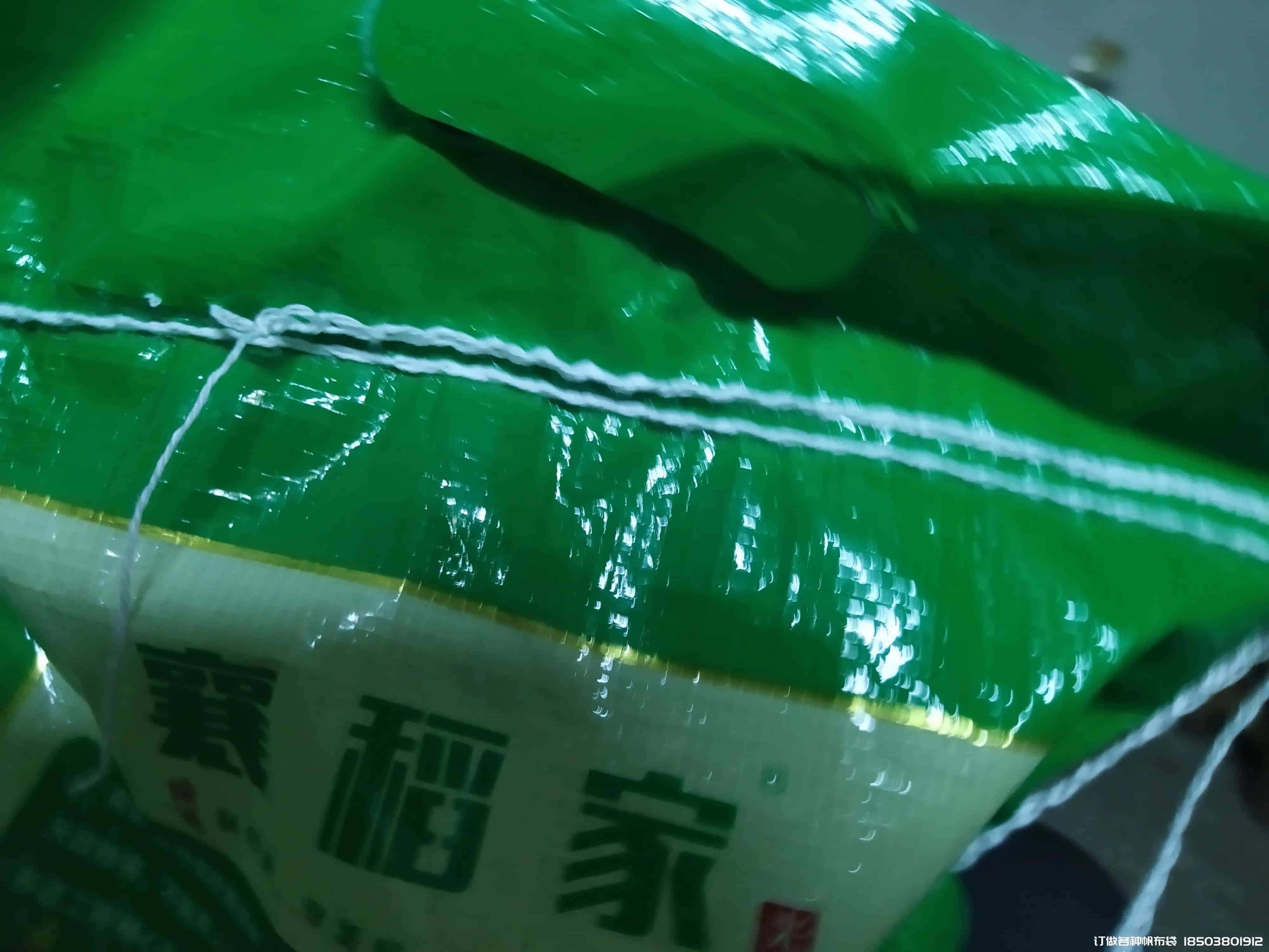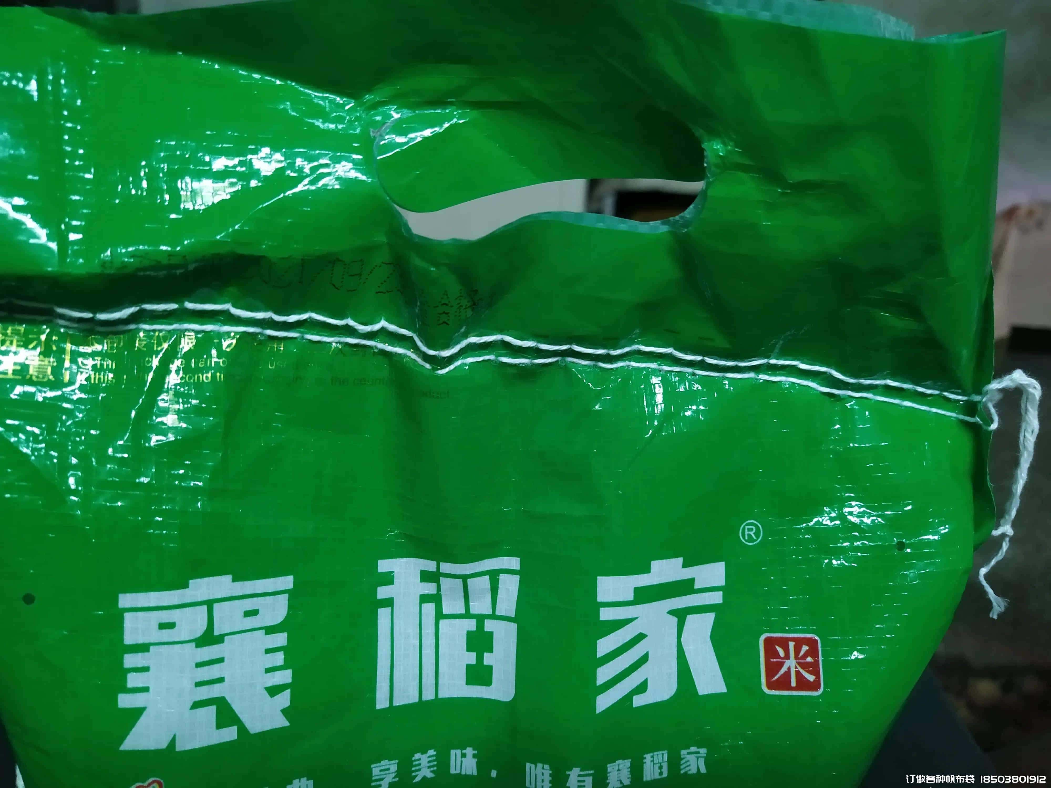 這是一個米袋子有兩層封口線,這一面是雙線,下一面是單線°