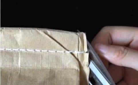 第三步,剪開的線頭分別往兩邊拉,一下子就可以把米袋打開了!
