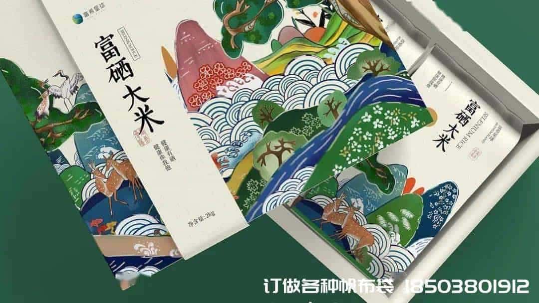 原標題:束口袋帆布袋制作電話/微信:15838231350浮世繪風格的大米包裝設計,畫風好棒!