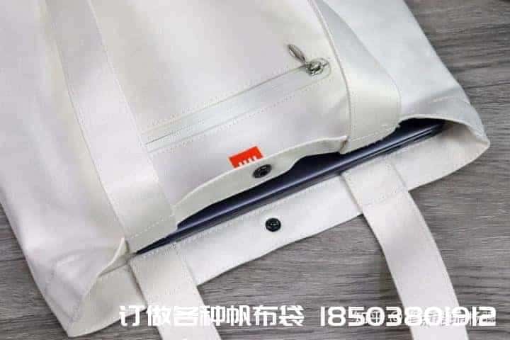 拉鏈材質和車線都很工整,定制版的品質感出來了。帆布包大袋口是沒有拉鏈設計的,這一點跟以前我朋友送我的一個魅族“青年良品”黑色帆帆布包裝帆布袋制作電話/微信:15838231350布袋有點不同。其實作為單肩背挎、或單手拎著的帆布袋而言,用一顆按扣比大口袋拉鏈安全性差一些,但日用場景你肯定不會用它裝什么貴重物品,單按扣可以簡單達到封口防丟就夠了。