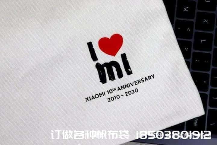 帆布包裝帆布袋制作電話/微信:15838231350前陣子是小米十周年的狂購時間,相信不少米粉都趁熱乎擼了不少小米家的好貨,我看咱們本地米粉群里一堆大佬在秀自己的十周年紀念體恤(黑色I love小米那款),那家伙,心里默默切了數十次檸檬!你們厲害,但我也不差,這次終于讓我撈到機會秀一個你們沒有的定制貨了。這篇小文,我就斗膽展示一下,本人被一道天雷劈中獲得的“秘制幸運”:小米十周年紀念版定制帆布包。你看看,是不是也有I love mi?是不是也有XIaomi 10th Anniversary字樣,你有錢也買不到,服不?