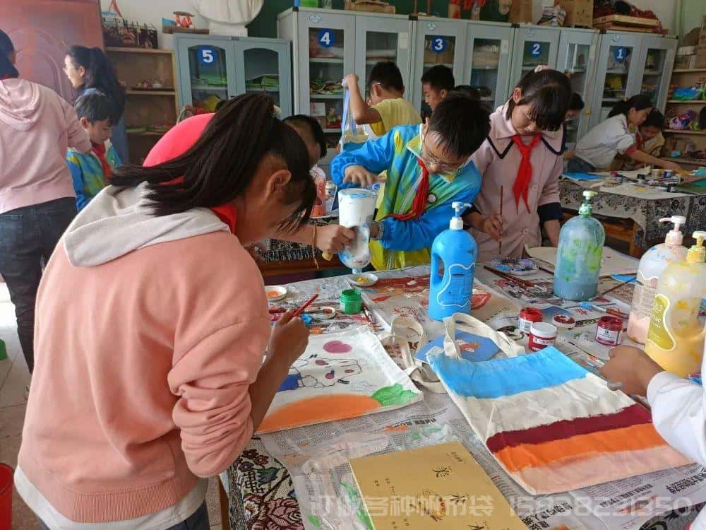 荷花鎮中心小學鄉村學校少年宮:創意帆布袋,繪畫童心夢