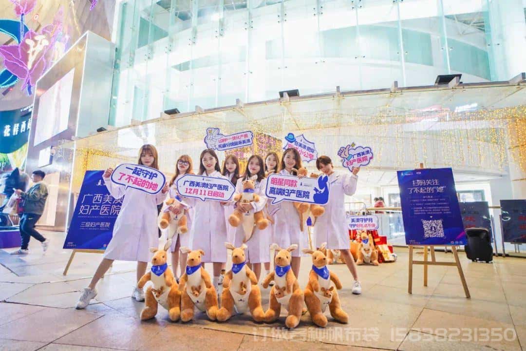 十幾名抱著袋鼠玩偶跳舞的小姐姐們