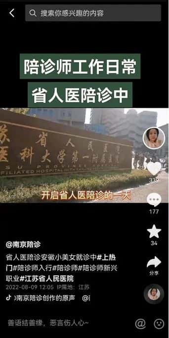 孫靜把自己的陪診日常發到直播平臺上,一個視頻10秒鐘左右,畫面中有幾個大字“陪診師工作日常”,底下還有字幕,加上標簽、配上直播平臺流行的背景音樂,總有人點贊。她自己也沒想到,有一天能有上萬的“粉絲”。