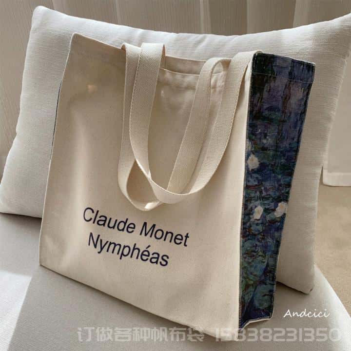 短評:這個價格稍低,能當個購物袋,但顏值不能低,側面是法國印象派畫家莫奈的名畫《睡蓮》,街拍也挺時尚的,跟大媽們的購物袋區別開來。