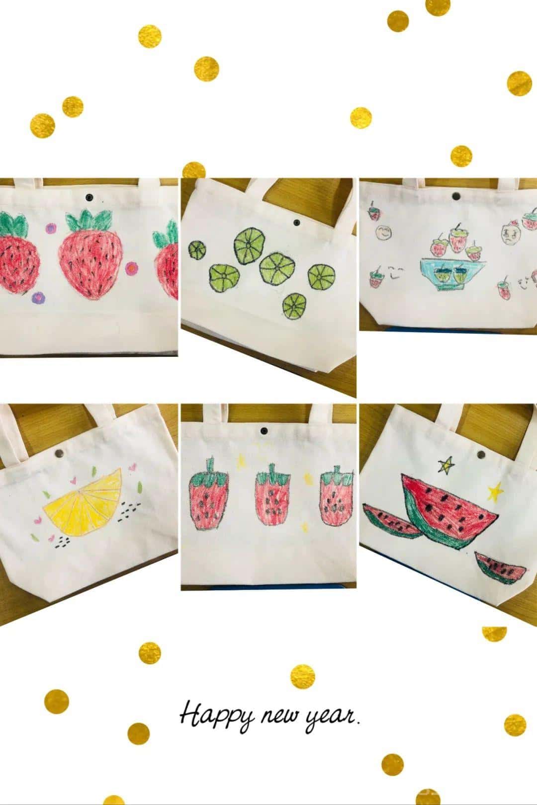 美味的蛋糕,彩色的糖果,四班的孩子們觀察細致,心靈手巧,將日常的美味通通畫在了他們的袋子上,在這里仿佛置身于美食的殿堂。
