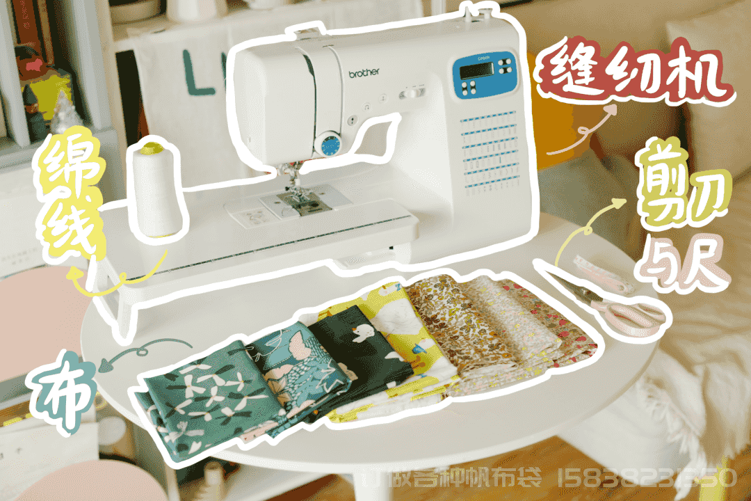 今年升級了一下裝備,入了一個厲害一點的縫紉機,其他材料的話就比較簡單,有剪刀和線就可以啦!