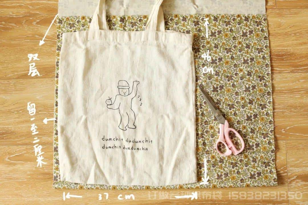 首先,拿出一個自己經常用的布袋子,以它的大小為模版,長度和寬度多留出1至2厘米用于縫合。
