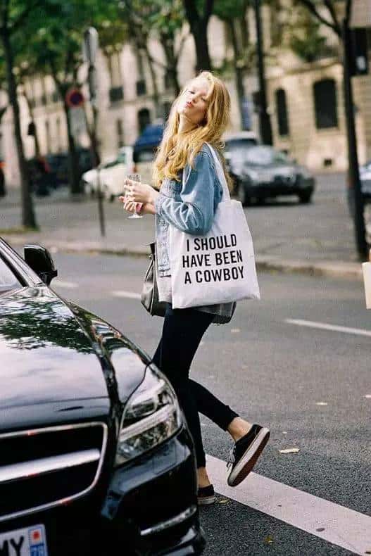 6. 帆布袋就一定不要花大價錢買,印著廣告語的帆布袋才夠 Casual。