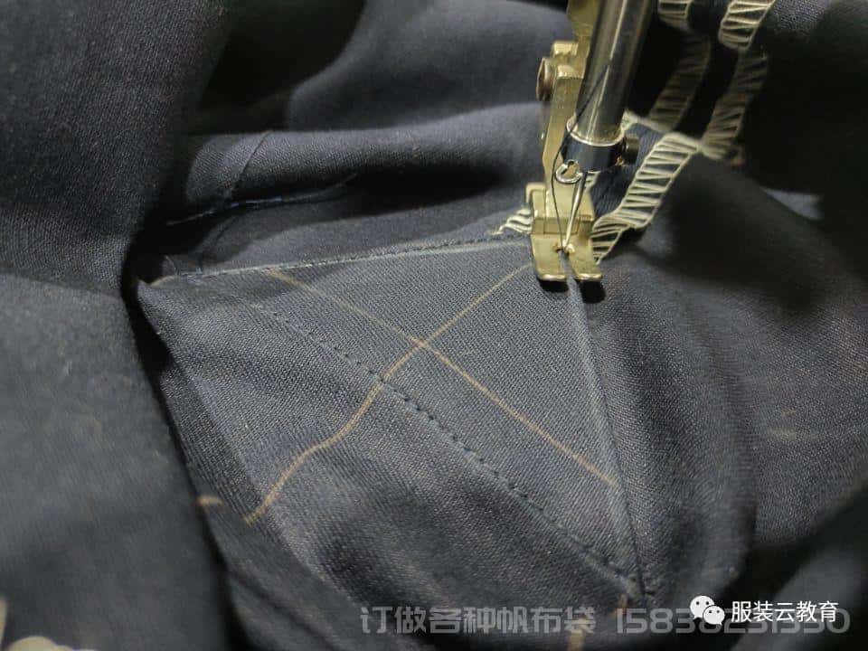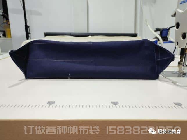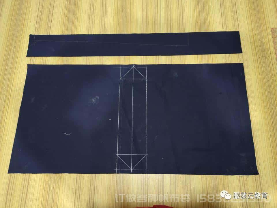9、在袋口用記號筆將上帶袢的位置標記出來;