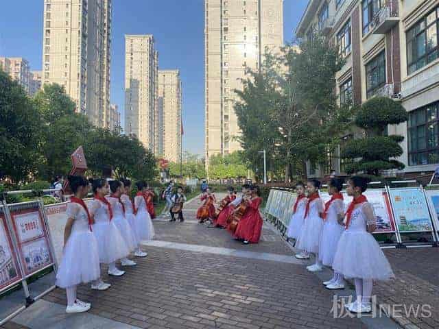 早上7:30,學校樂團和舞蹈隊的20名學生身著禮服,在教學樓前依次排開,等候老師到場。“敬禮!”當號令聲響起,樂團學生齊聲演奏起大提琴曲目《法國民歌》《輕舟蕩漾》《校園快板》,舞蹈隊學生向老師行少先隊隊禮,歡迎老師進入校園。