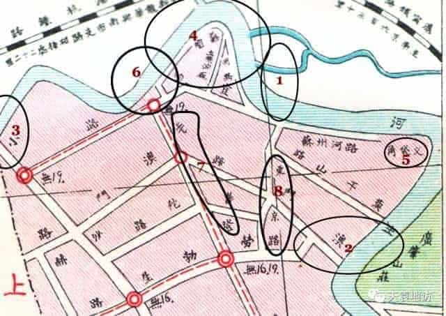 此處為今蘇州河夢清園,是上海啤酒廠等幾家工廠原址,沿河的西蘇州路已經不存在。