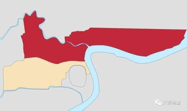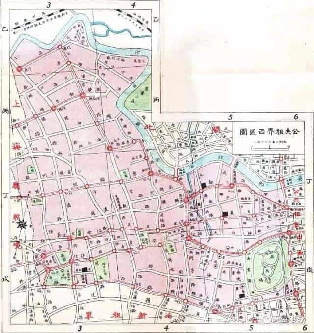 公共租界的略圖,深紅色為公共租界范圍,