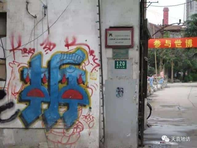 這個“拆”字的涂鴉很有意思,但更有意思的是,當我撰寫此文時仔細看了莫干山路120號門牌上面的小匾時,赫然發現“天安陽光半島籌建處”幾個字(2010.5)