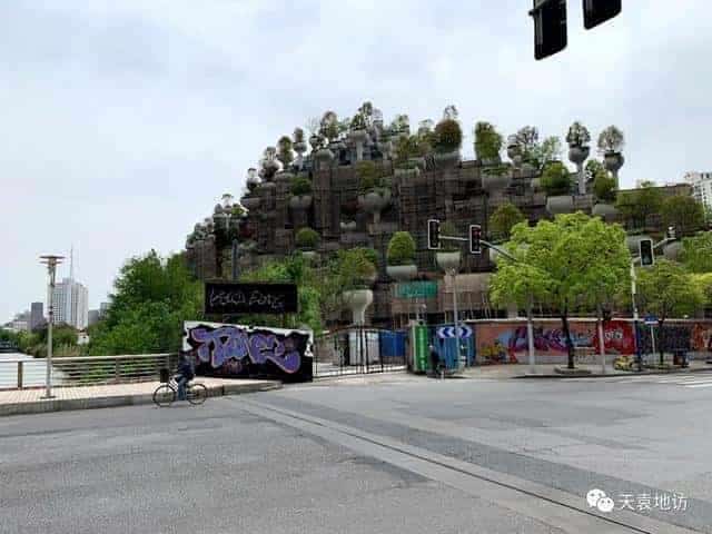 昌化路上看“空中花園”,配著涂鴉墻,魔性十足(來自Shanghai Daily)