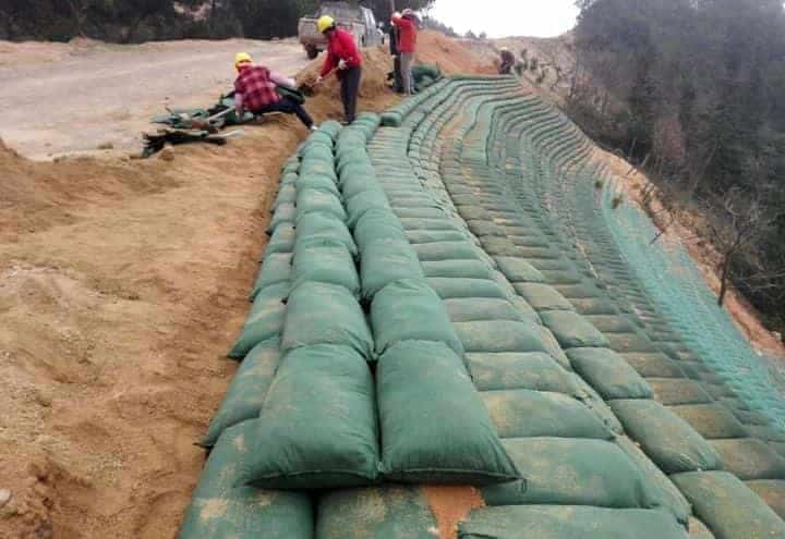 泰萊德無紡布土工袋是柔性生態邊坡工程系統重要的組成部分,生態袋具有目標性透水不透土的過濾功能,既能防止填充物(土壤和營養成分混合物)流失,又能實現水分在土壤中的正常交流,植物可穿過袋體自由生長,根系進入工程基礎土壤中,如無數根錨桿完成了袋體與主體間的再次穩固作用,時間越長越加牢固,更進步實現了建造穩定性永久邊坡的目的,大大降低了維護費用。?