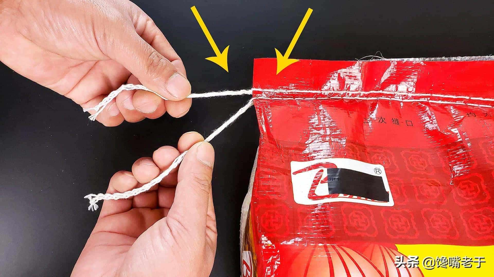 但是,很多朋友每次拆面粉的袋子,碰巧了,只要剪開線頭,輕輕一拉面袋就開了!但大部分的時候都是需要拿剪刀,一下一下地剪開!其實,開面袋也是有竅門的!只要記住下面這句話,保準你每次輕輕一拉就全開!
