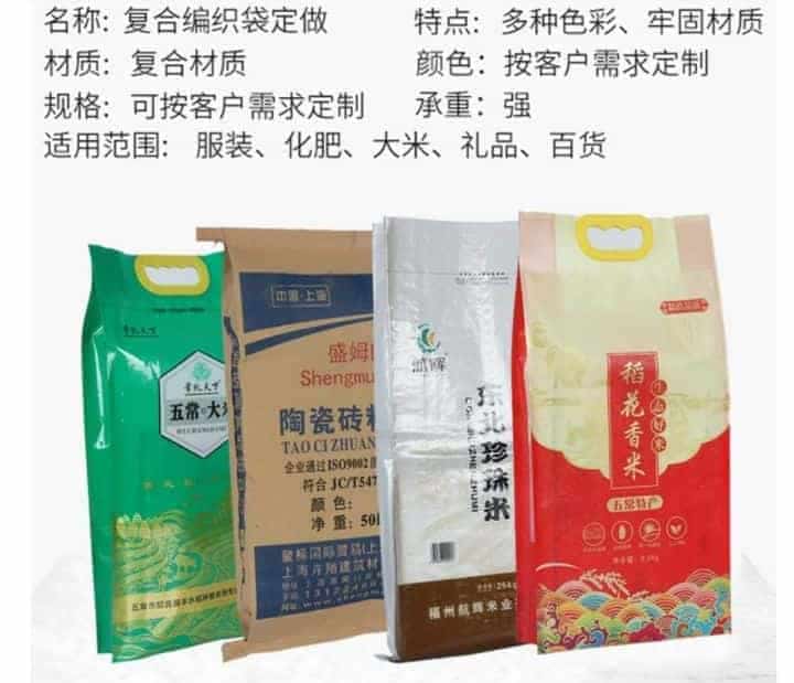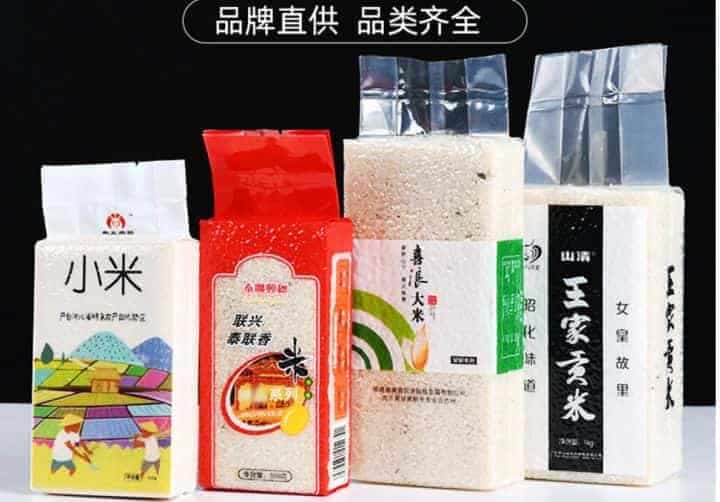 編織袋/布袋裝得大米也很多,多用于低端大米,中高端一些的塑料真空包裝就很多了。