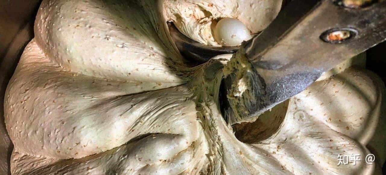 面粉中的蛋白質主要是麥谷蛋白和醇溶蛋白,約占面粉蛋白質的80%,是形成面筋質的主要成分。它們不溶于水,反而可以吸收水分。在吸收水分后,就可以形成面筋,使面團質地柔軟。面筋具有彈性、韌性、可塑性和延伸性。面筋在面團中形成立體的網狀結構,包裹酵母發酵產生的二氧化碳,酵母不斷產氣,使面團逐漸增大。