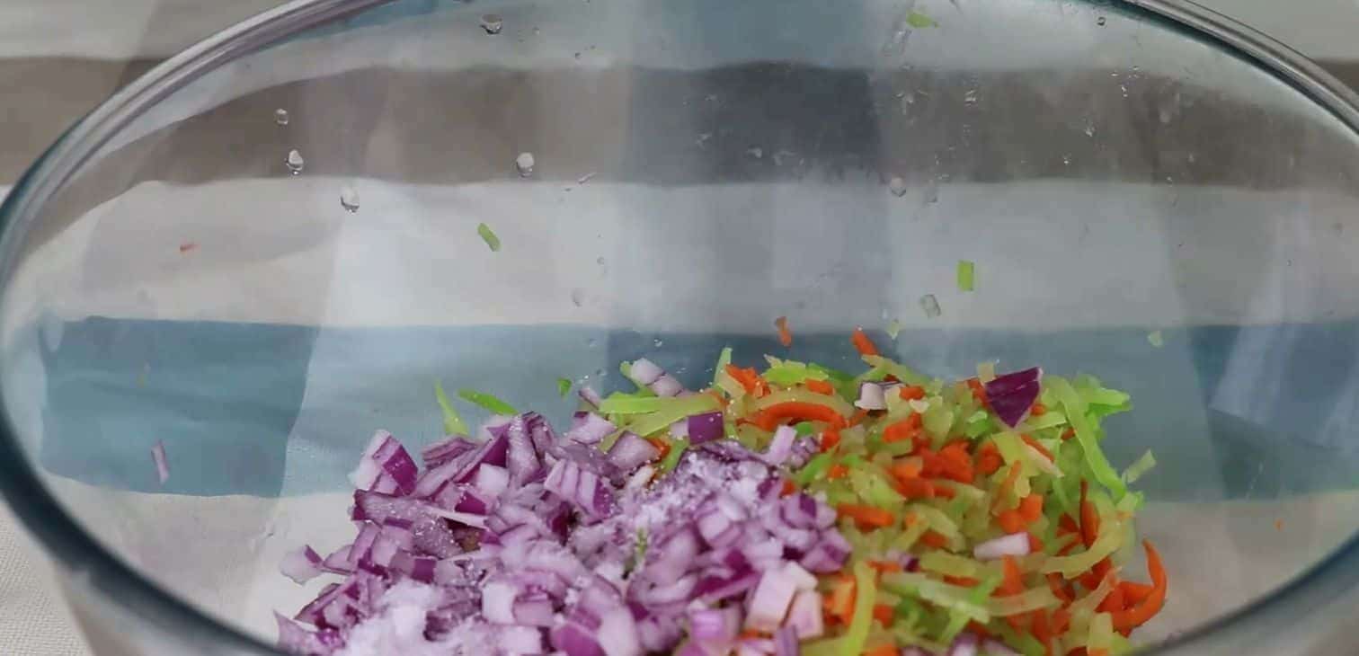 4、蘿卜絲焯水兩分鐘就足夠了,時間到了之后將其控水撈出來,倒入清水過涼,擠干水分。接下來用刀把蘿卜絲切碎,然后放入碗中。把洋蔥取出放到案板上切成面粉袋訂做廠家電話/微信:15838231350碎丁放到碗中。