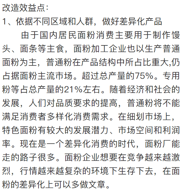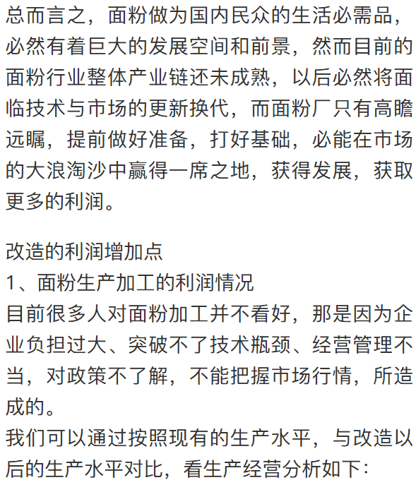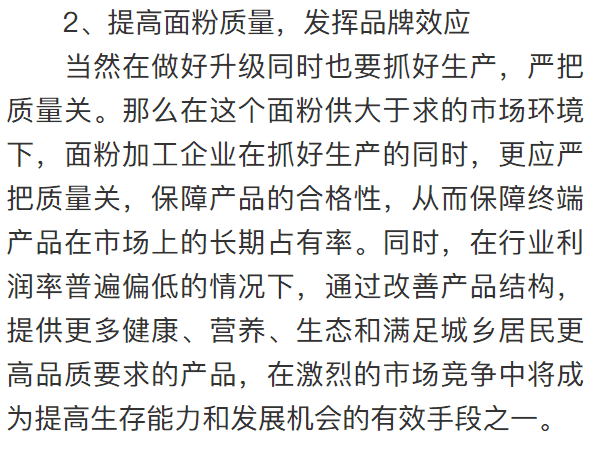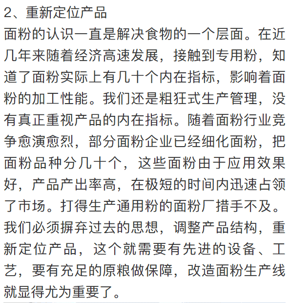雖然面粉加工是民生行業,受到國家的高度重視度,使得其已成為較大規模的生產體系,發展勢頭也相對平穩,但同時也面臨著產能過剩,行業利潤低,競爭力不強等問題。在行情持續處于弱勢的時期,如何通過提升自己從而保持盈利,已達到持續發展的目的呢?