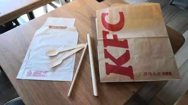 除了超市,本輪禁塑限塑要求最多的是餐飲行業(yè),不可降解塑料袋、塑料吸管、餐具均被禁用。記者走訪發(fā)現(xiàn),肯德基、麥當勞等大型連鎖餐飲門店已經(jīng)在新規(guī)實行的前幾天陸續(xù)更換為木質餐具、紙質吸管。