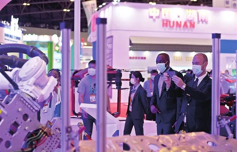 “這么多好吃的。”有“吃貨”歡快地蹦進河南展區。展臺上,滿滿當當擺放著各種食品。劉女士拿起一袋富硒小米細細打量,“賣小米賣到咱山西來了。”工作人員回應說,伊川小米有千年種植歷史,廚圣伊尹曾說:“飯之美者,玄山之禾。”將伊川小米稱為最好吃的小米。伊川富硒小米天然富硒,更適合老人、孕婦和寶寶食用。柿子醋、獼猴桃酒、牡丹籽油……這些特色產品無不讓人食指大動。有食品,就要有餐具、包裝。旁邊的展臺上,企業帶來全生物降解餐飲器具和食品包裝盒。全生物降解材料制作的吸管、刀叉,不僅健康安全,而且完全可以生物分解,減少白色污染。河南省農業發達,被譽為“中原糧倉”,每年外調原糧及制成品超過200億公斤。同時,也是全國第一糧食加工大省、第一肉制品大省,中國最大的速凍食品生產基地,豐富了國人的餐桌。中國二分之一的火腿腸,三分之一的方便面,四分之一的饅頭,五分之三的湯圓,十分之七的速凍水餃均來自河南。哦,還有辣條,已經攻陷了全國小賣部,成為國民喜歡的網紅零食。河南當然不止這些。全省生產總值先后邁上4萬億元、5萬億元兩個大臺階,戰略性新興產業增加值占規模以上工業比重超過20%,高質量發展邁出了重大步伐。智能機械制造吸引外商的目光。